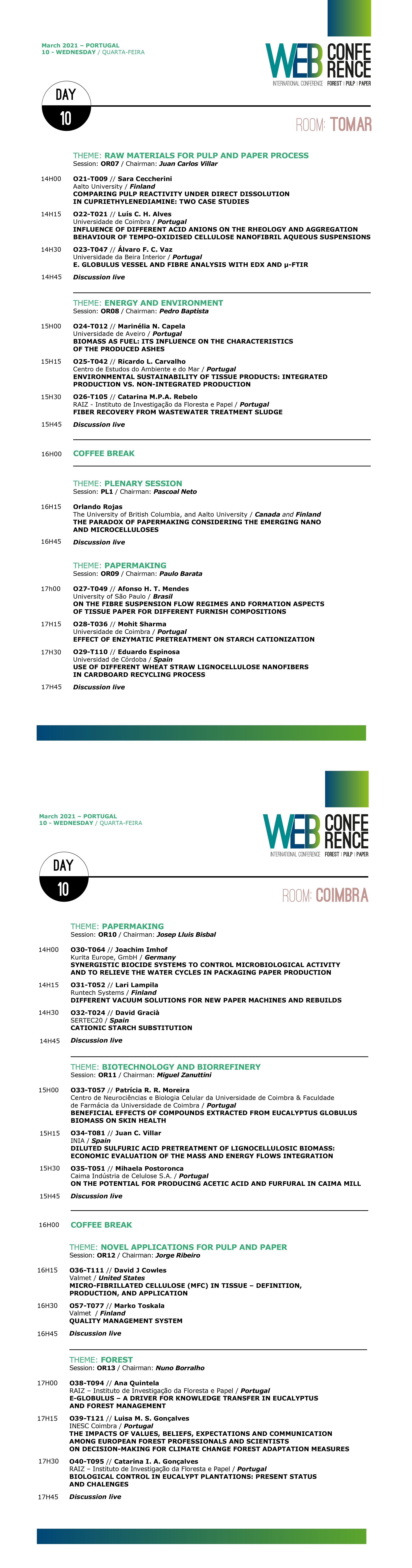 Dia 10 de março - Sala TOMAR e Sala COIMBRA