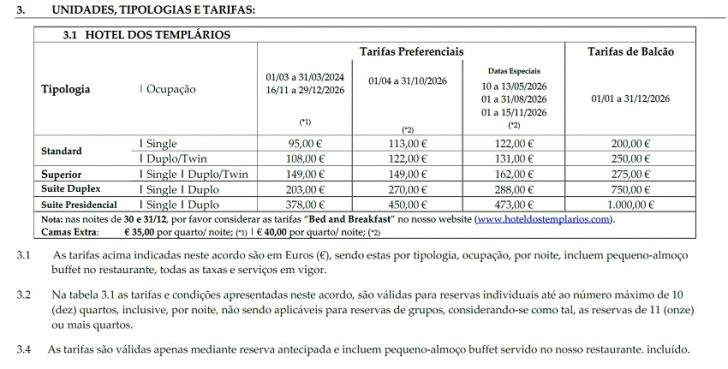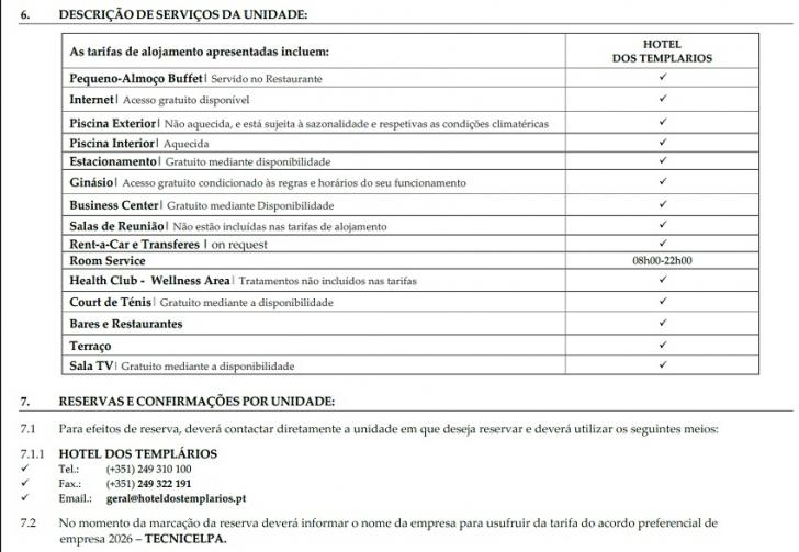 A Tecnicelpa renovou o protocolo com o Hotel dos Templários em Tomar, permitindo aos sócios da Tecnicelpa fazerem reservas particulares, em trabalho, ou lazer com a familia, beneficiando de tarifas mais favoráveis, de acordo com a tabela apresentada, válida até 31-12-2026.